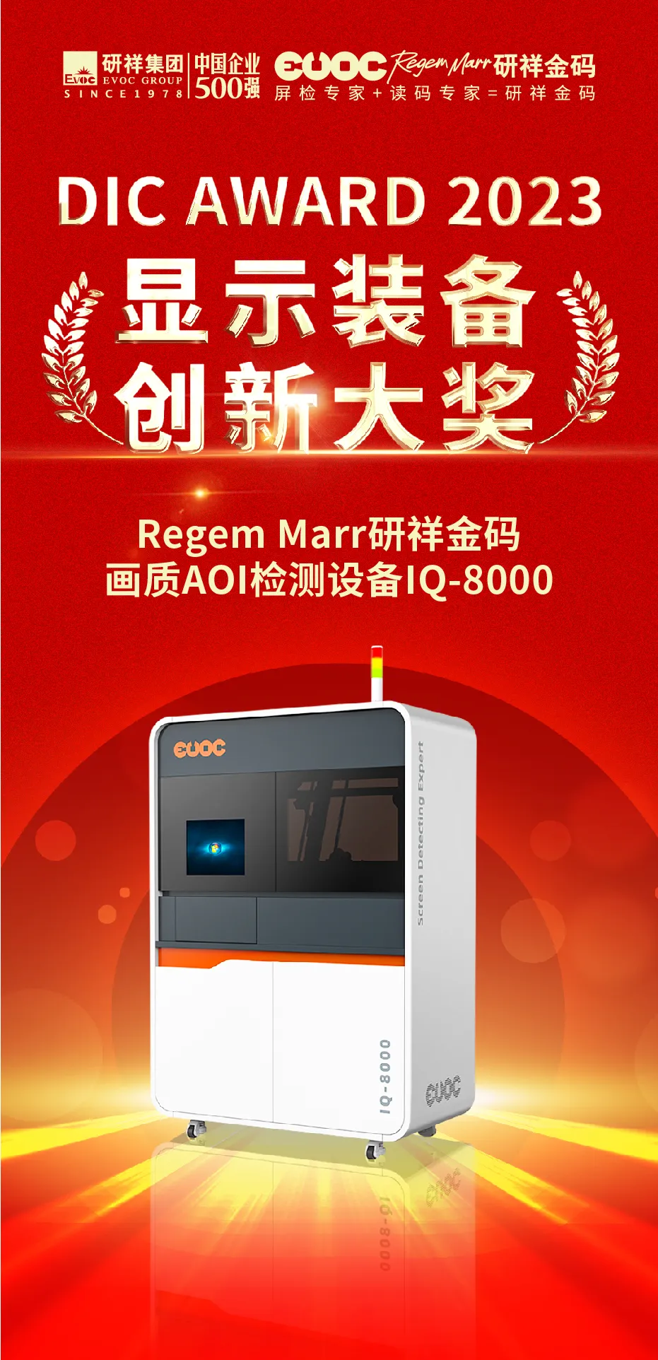 近日,DIC AWARD 2023国际显示技术创新大奖获奖名单公布,hth.com华体会画质AOI检测设备IQ-8000凭借前沿AI技术、卓越的产品性能,荣获“显示设备创新大奖”
